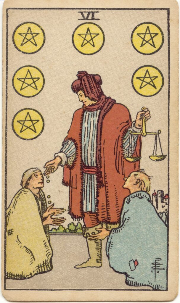 Six of Pentacles – Rider–Waite Tarot (1909)